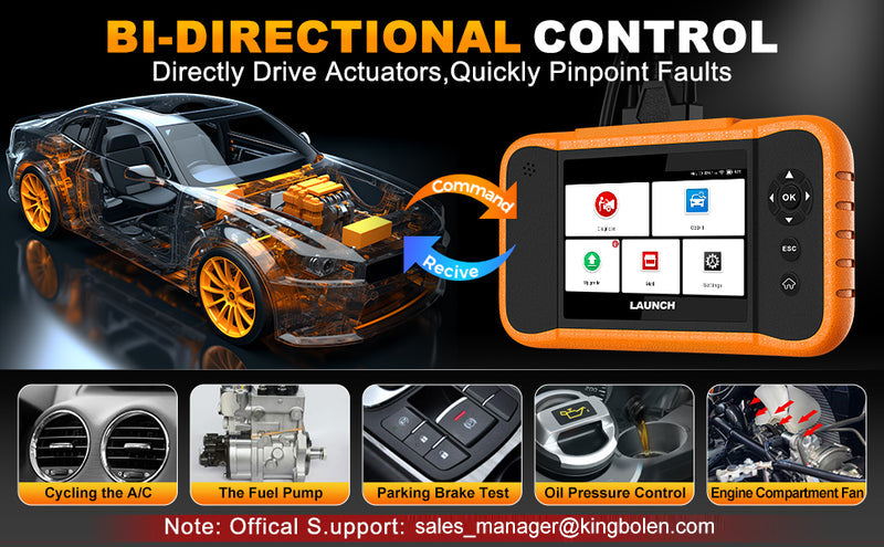 Bi-Directional Control is a feature that allows for two-way communication and control between scanner and car systems. It enables drive solenoids and actuators for active testing, sending commands to the system/component to test its operating status without using the vehicle controls. By utilizing Bi-Directional Control, technicians, mechanicians, car dealer, auto repair shop, DIYer or individual owner can actively monitor and control the behavior of a system, let you quickly understand whether a specific system, component, or subsystem is operating normally. It provides a more comprehensive and interactive approach to testing and troubleshooting, allowing for efficient identification and resolution of issues, pinpoint issues and greatly improve diagnostic efficiency.