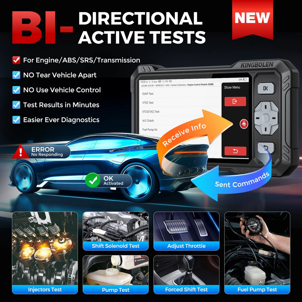 This is one of the most significant professional-grade capabilities of the S608, also known as Active Test. It allows the diagnostic tool to send commands directly to the vehicle's actuators and systems, rather than just passively receiving data. Technicians can use this function to verify component integrity by. This significantly reduces time-consuming mechanical disassembly, thereby improving fault diagnosis efficiency and accuracy.