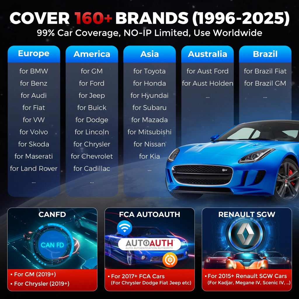 The tool boasts exceptional global compatibility, covering over 110 brands of major global automakers. Its supported range spans from the standard 1996 OBD2 compliant vehicles all the way up to the newest 2025 models. This extensive coverage and continuous support for new vehicles ensure the S608 is a long-term investment capable of meeting the diagnostic needs across a wide variety of car makes and model years.