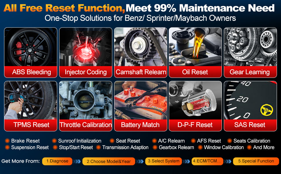 All Maintenance Service Functions:Access a complete suite of maintenance service functions, ensuring your vehicle stays in optimal condition with ease.