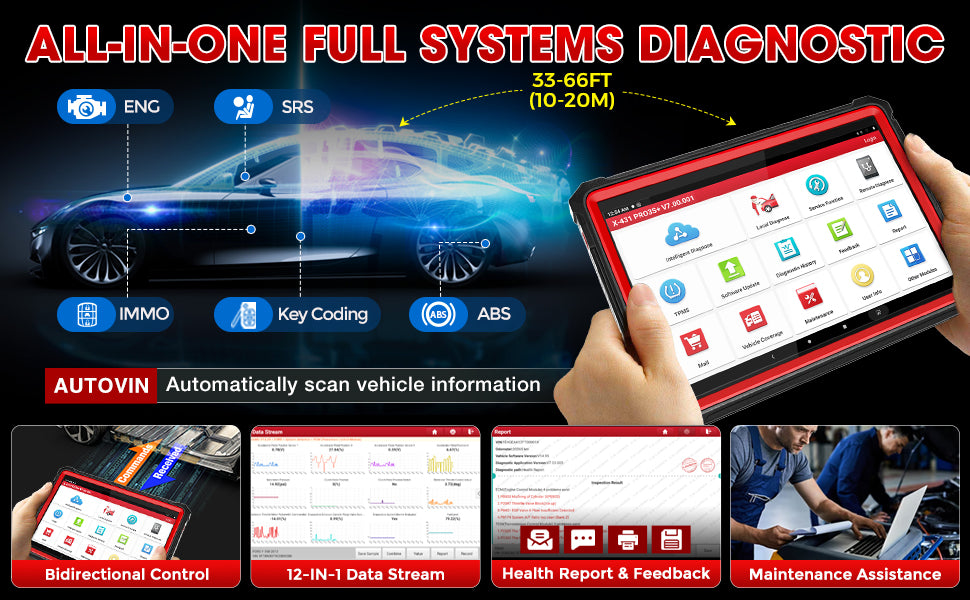 Scan and analyze all available vehicle systems—engine, transmission, ABS, SRS, TPMS, IMMO, BCM, HVAC, and more. This comprehensive diagnostic capability provides OE-level insight into your car’s health, retrieving and clearing codes, viewing live data, and offering freeze frame and ECU info. Perfect for pinpointing faults across the vehicle with accuracy and confidence.